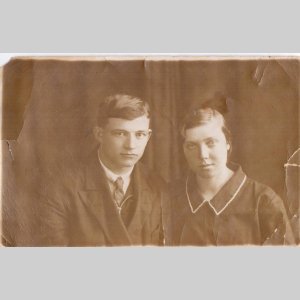 Подпись на обороте фото (на русском): Снялись 6 марта 1937 года в городе Альбрандт Андрей и Думлер Елизабет П.