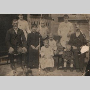 Эрлих Фридрих (1867-1937) с супругой Елизаветой Альбрандт (1872-1940) и их дети. Мужчина с правого края неизвестен.