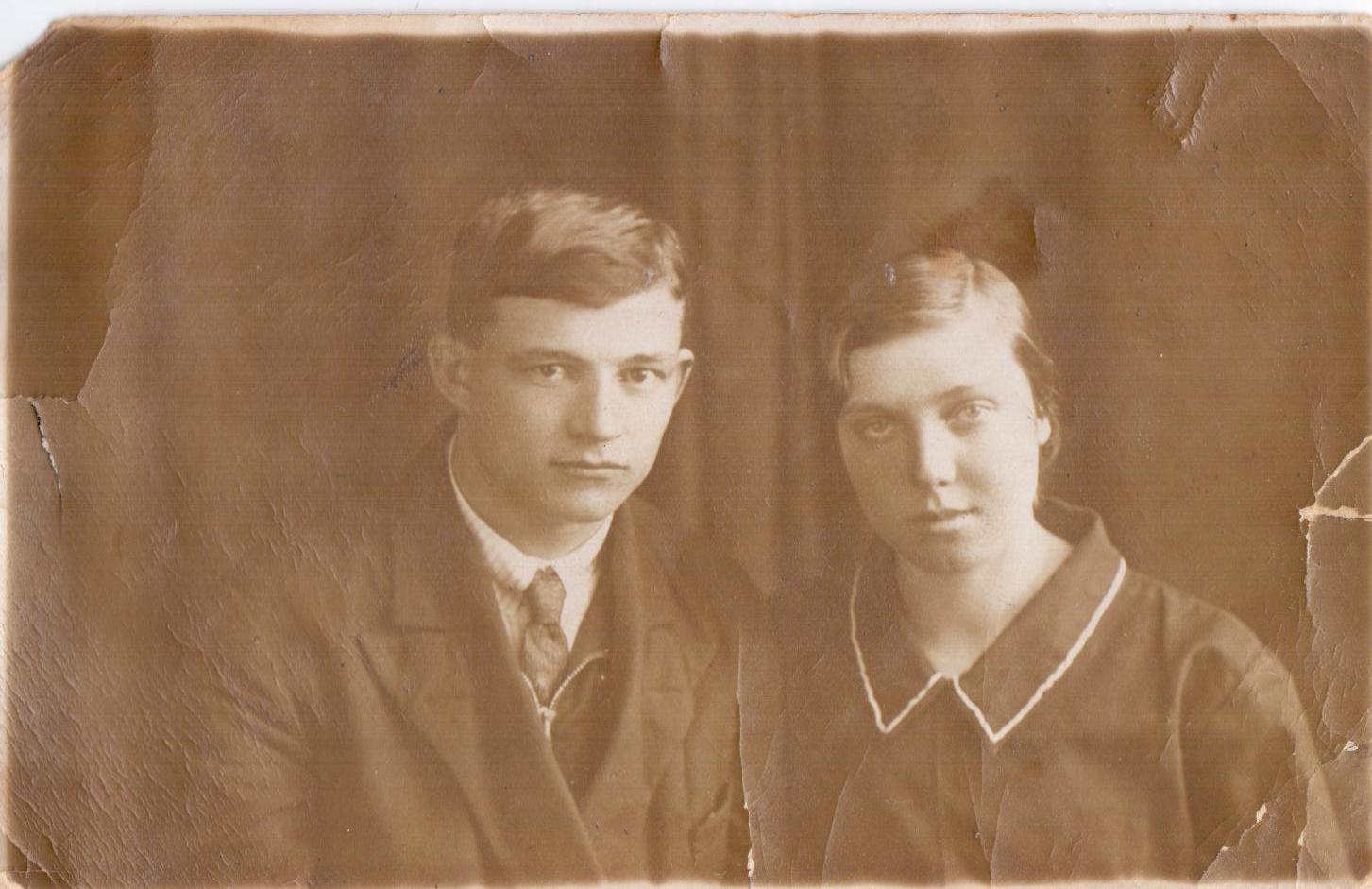 Inscription on the back of the photograph (in Russian): “Photographed on 6 March 1937 in the town of Albrandt: Andrey Albrandt and Elizabet P. Dummler.”