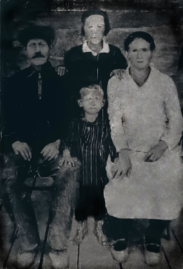 Найдено в семье, где супруги и их родители были из Гримм. На фото никто из родственников никого не узнал. Есть вероятность, что другая деревня и фото попало случайно в семейный архив.