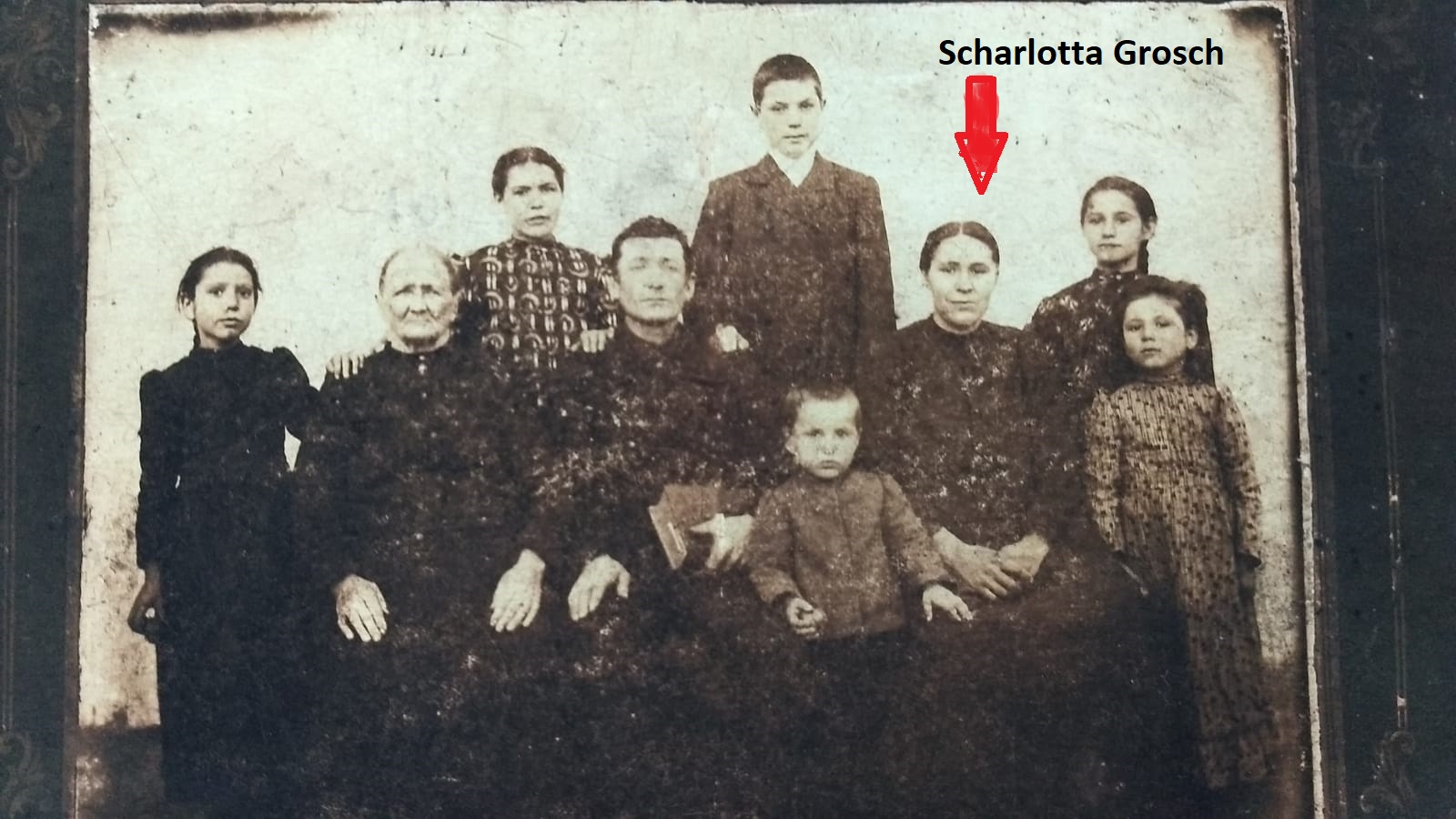 An unidentified family from Grimm, possibly the Aab family; Charlotte Grosh is also identified.