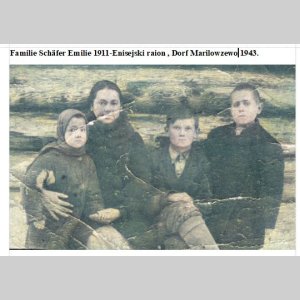 Шефер Эмилия с детьми, деревня Мариловцева,Енисейский район, Красноярский край, 1943 год.