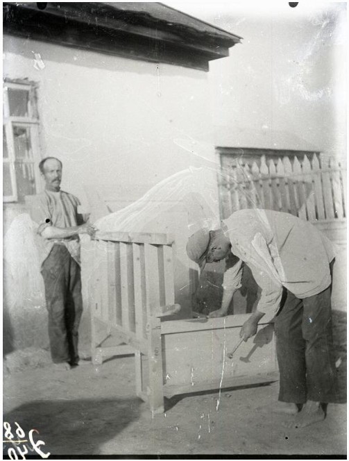 Сборка сорного ящика веялки. 1930, июнь.