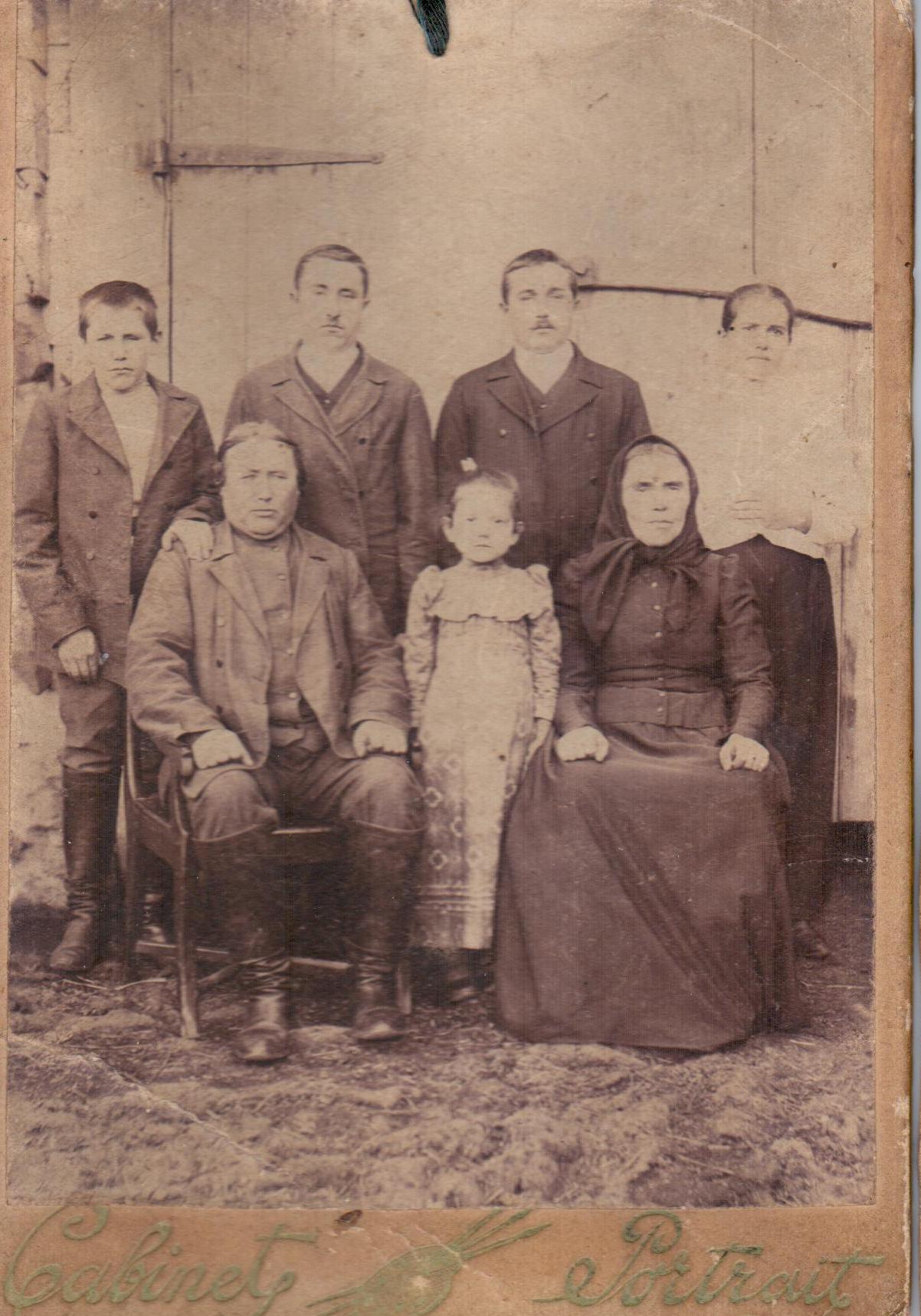 It has been established that Johann Jakob Schmick (1860–1920) was married to Christina Margareta Birgheim (1861–1920). Their son Heinrich (born 1889) married Katharina Margareta Reichel (born 1887) in 1910. It is possible that she is the woman shown in the photograph. Also, most likely, two of Heinrich’s brothers are present: Johann Jakob (born 1892) and Philipp (born 1897).