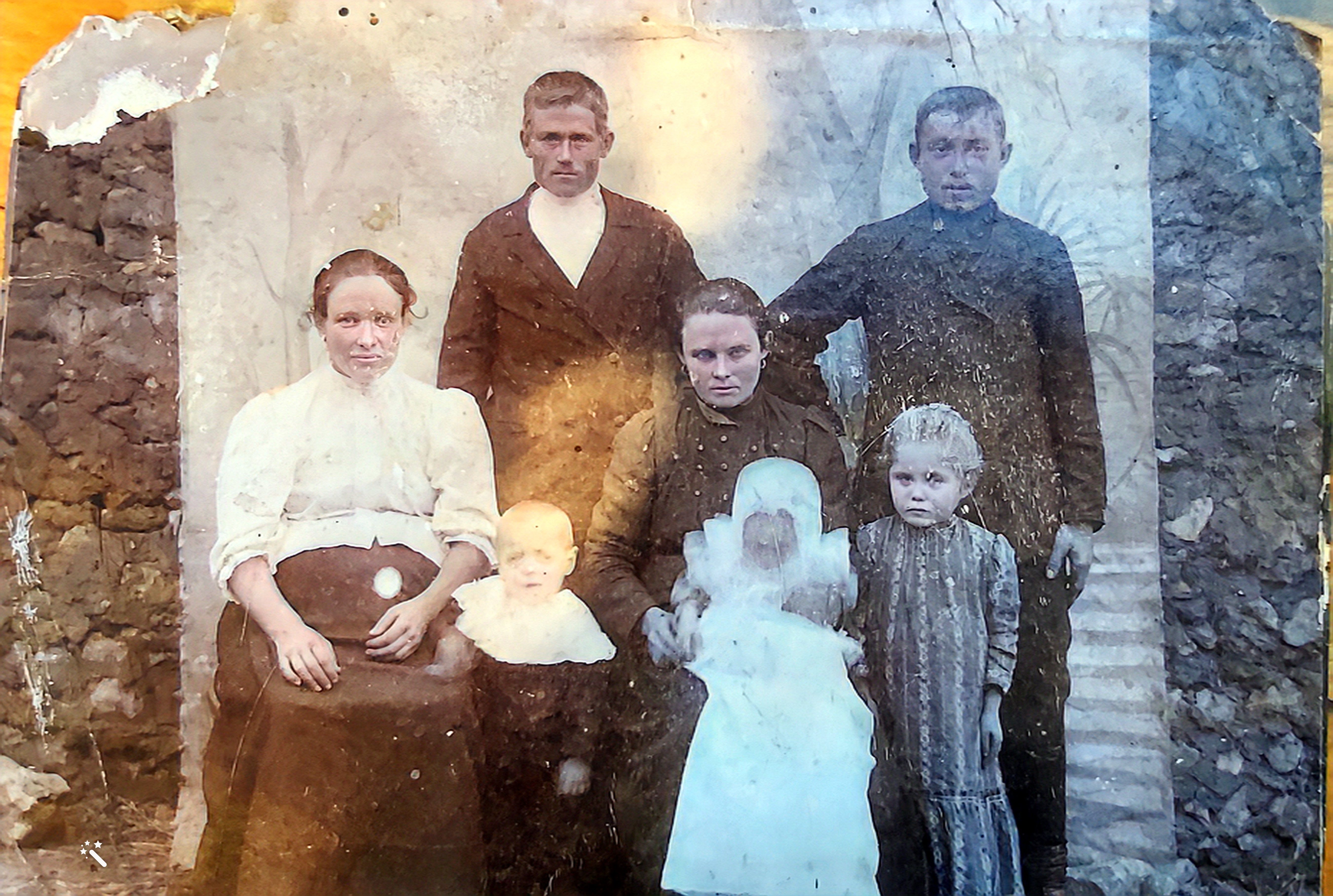 Найдено в семье, где супруги и их родители были из Гримм. На фото никто из родственников никого не узнал. Есть вероятность, что другая деревня и фото попало случайно в семейный архив.
