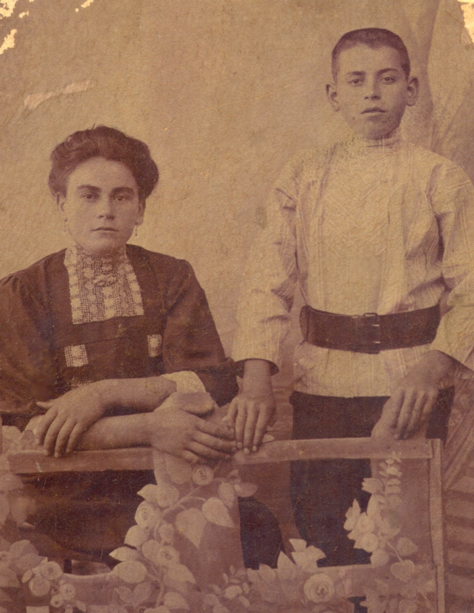 Charlotte Erdmann (1891–1963) with her brother Friedrich (1895). Their parents were Johann Friedrich Erdmann and Anna Margareta Major. Charlotte married Johann Jakob Brester (1884–1967); their family emigrated to the United States (1911). The Brester–Erdmann marriage produced 11 children, and there are many descendants of this couple in the USA.